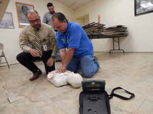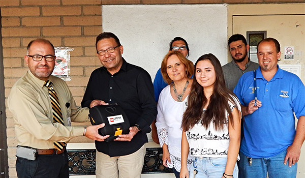 On Thursday, June 14th, Mariposa Community Health Center donated a new Automated External Defibrilator (AED) to the Crossroads Nogales Mission. Gabriel Martinez, Mariposa’s Lab & Safety Manager was present with Daniel Treviño, Mission Supervisor, and other Mission staff to receive the new AED for their facility, in addition to CPR training and certification.