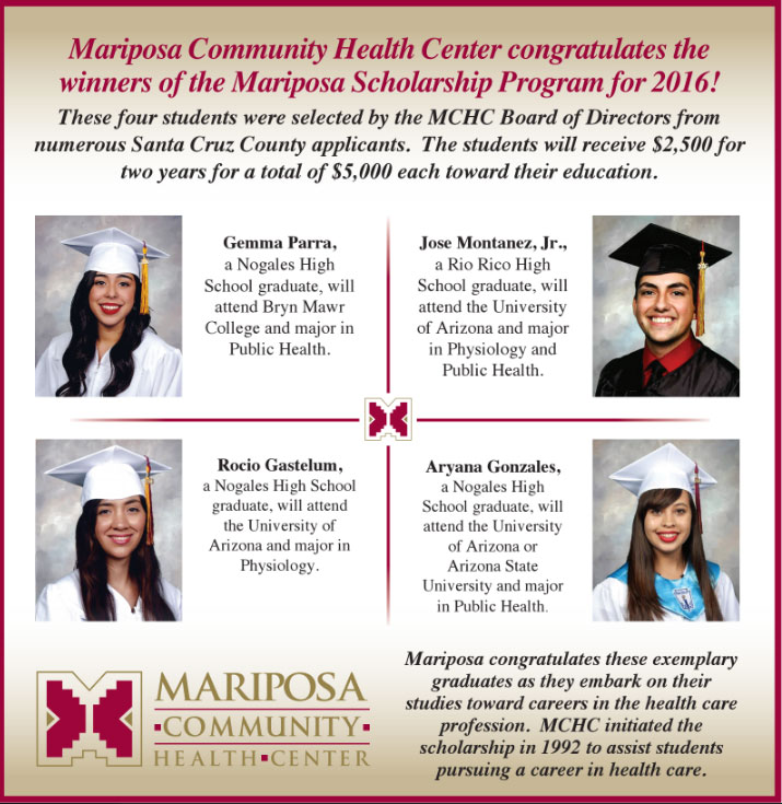 Mariposa Community Health Center congratulates the winners of the Mariposa Scholarship Program for 2016!